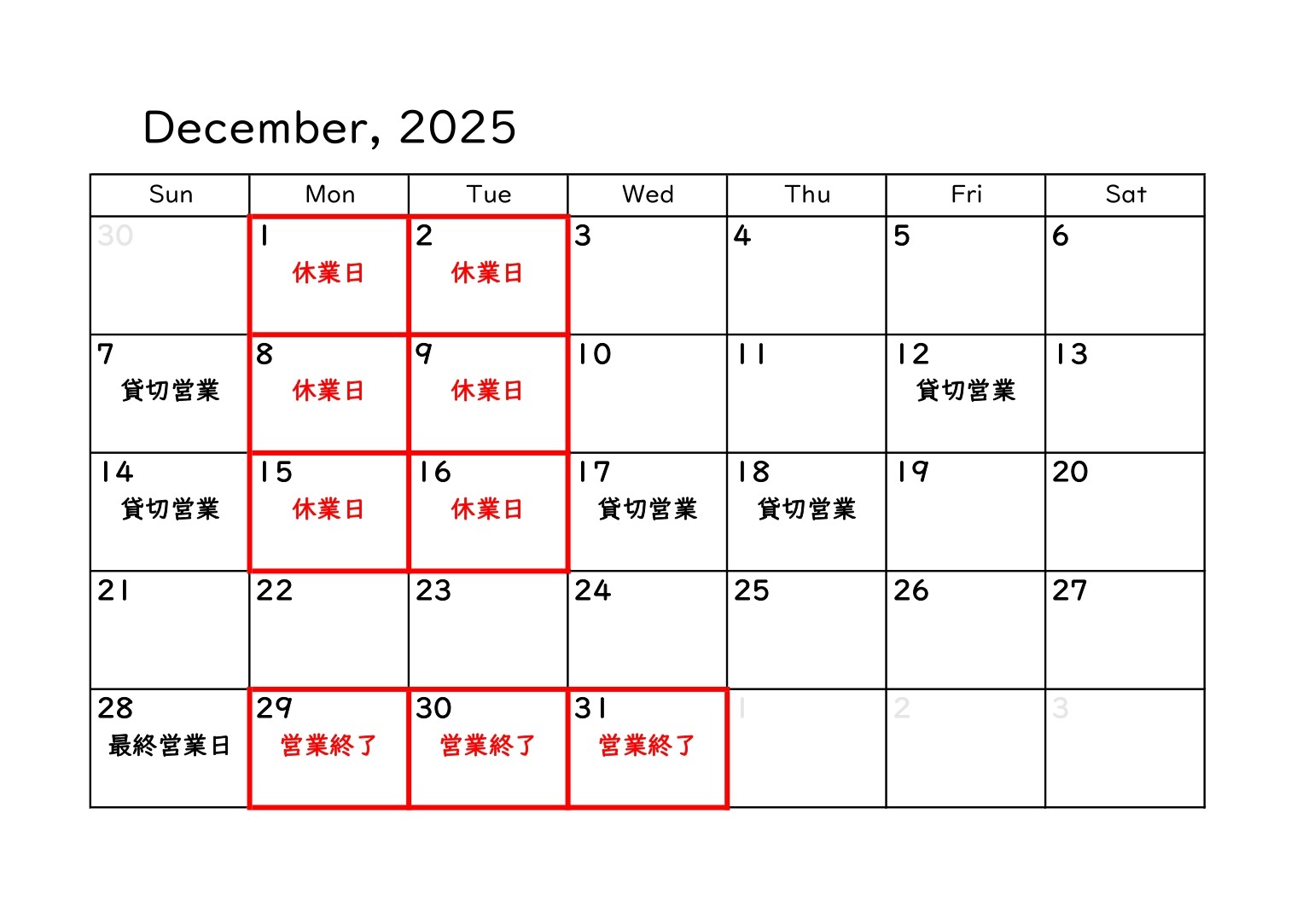 最新の営業日をお知らせいたします。